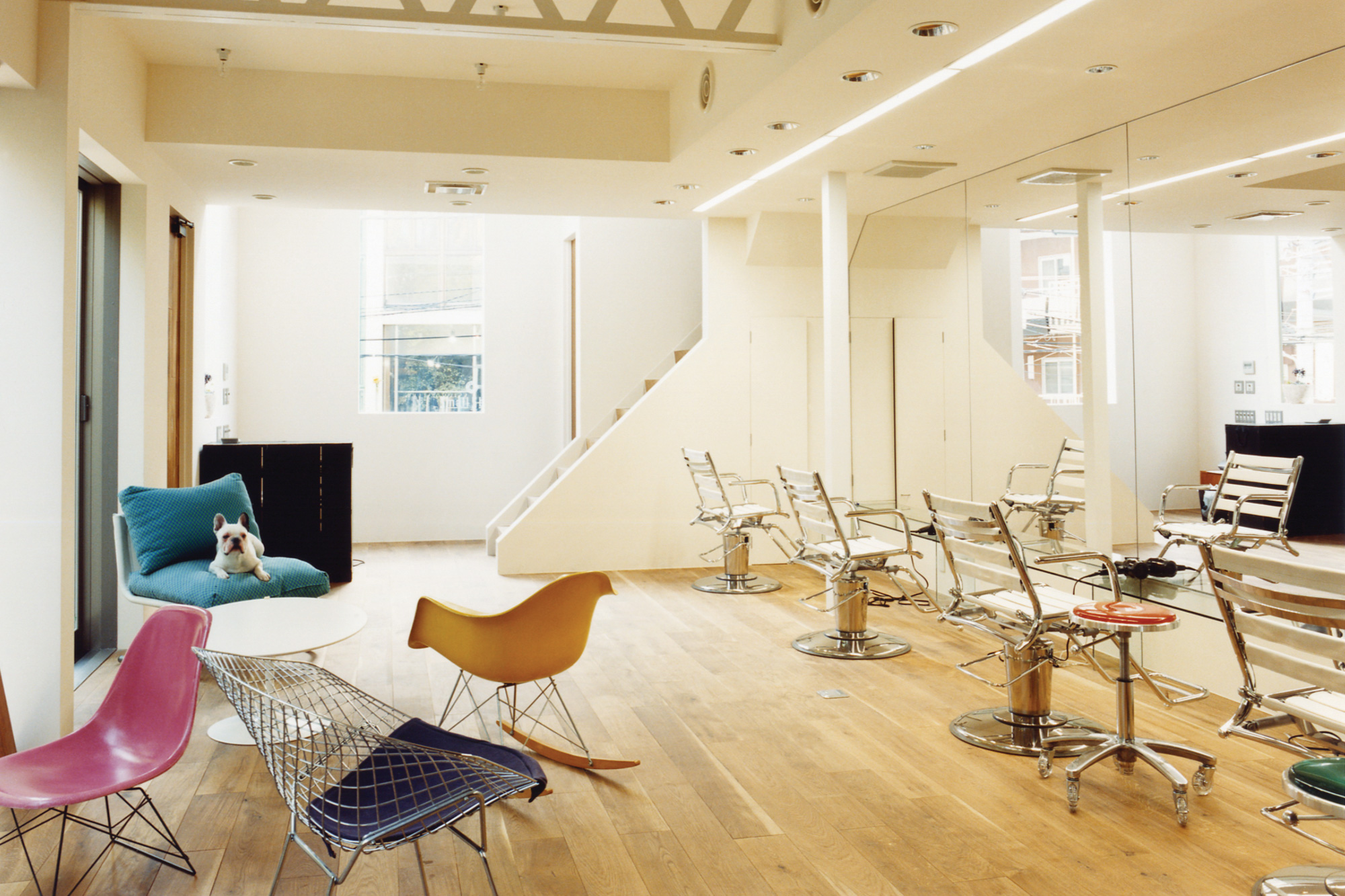 表参道から1本裏通りの原宿では珍しく庭がある一軒家の1階を美容室、2階を住居とするプロジェクト。