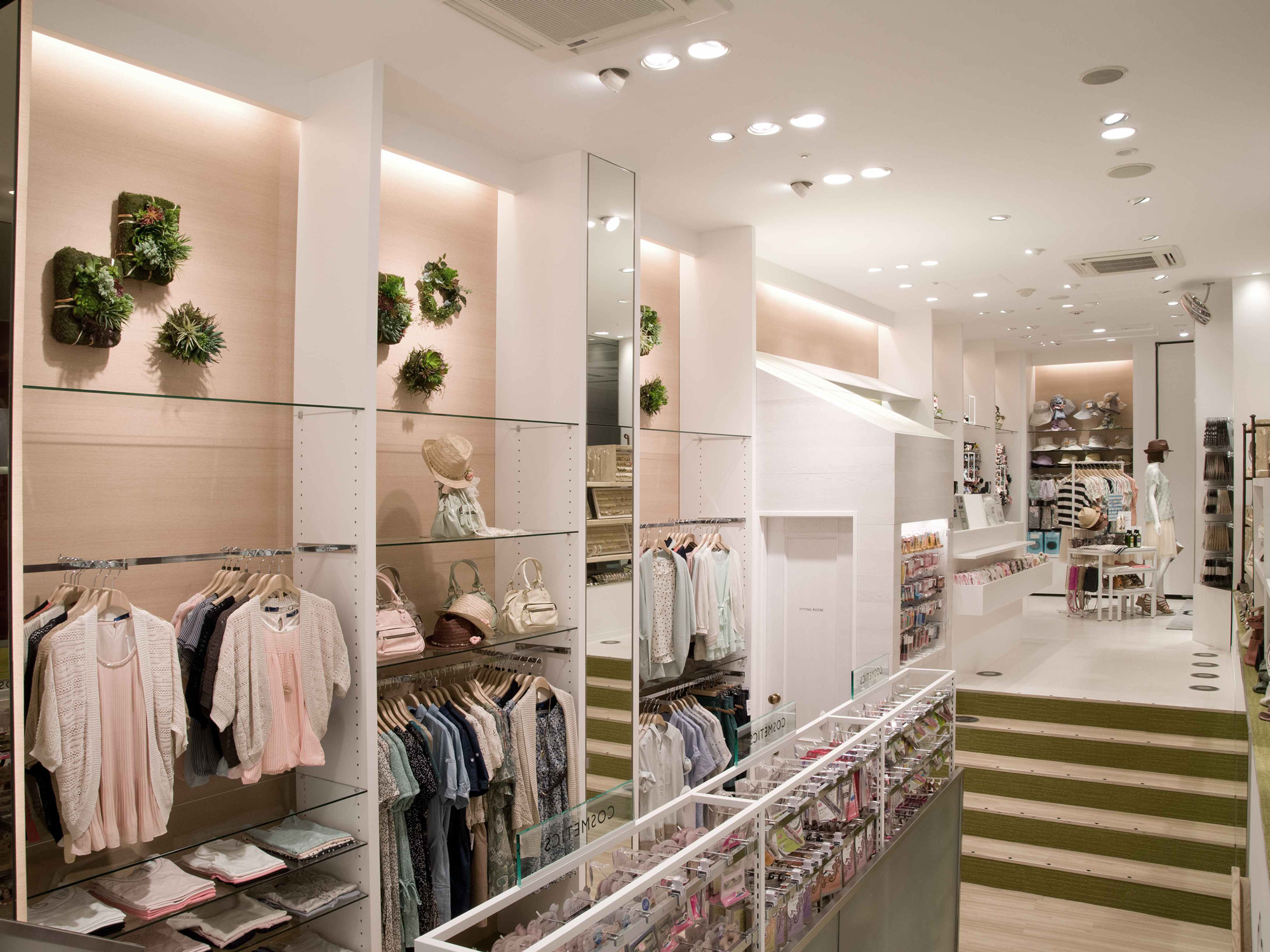 多くの人が行き交う新宿駅...立地の中で女性がふと足を向けたくなる新宿の丘をショップコンセプトに登ってみたくなるような店舗を目指した。