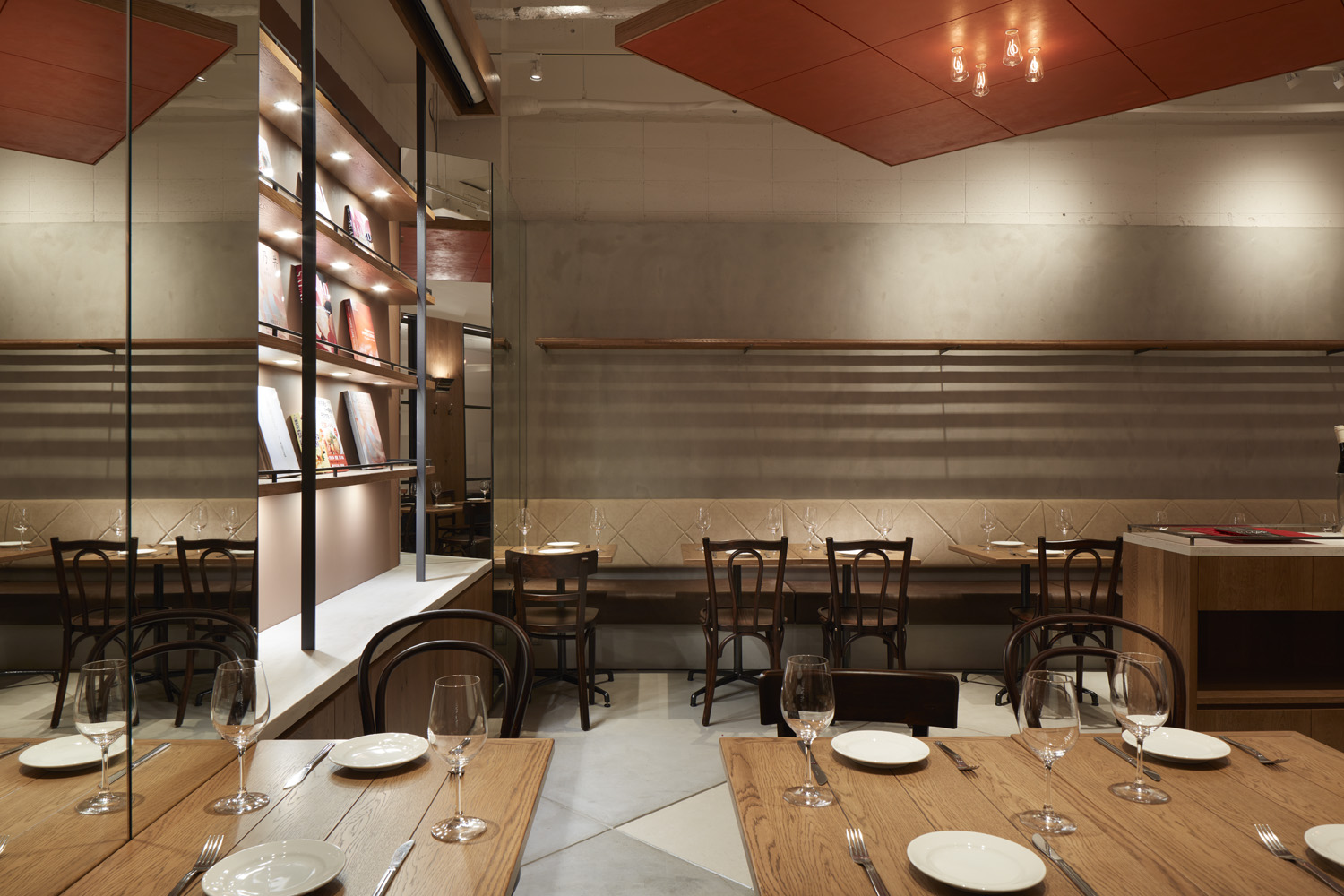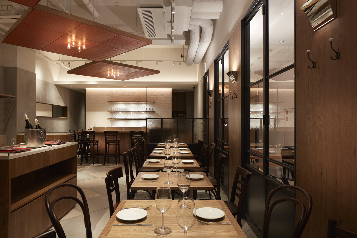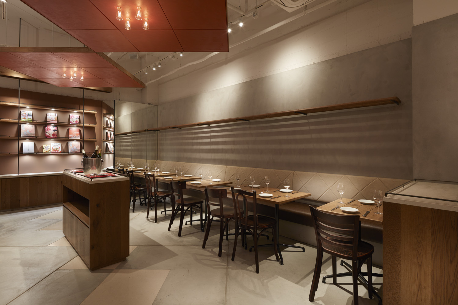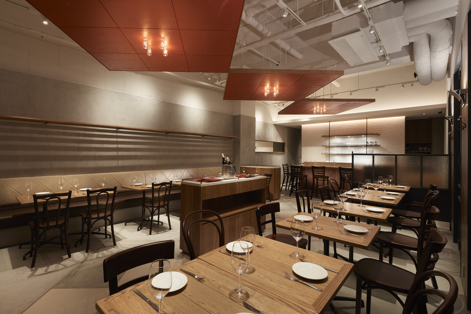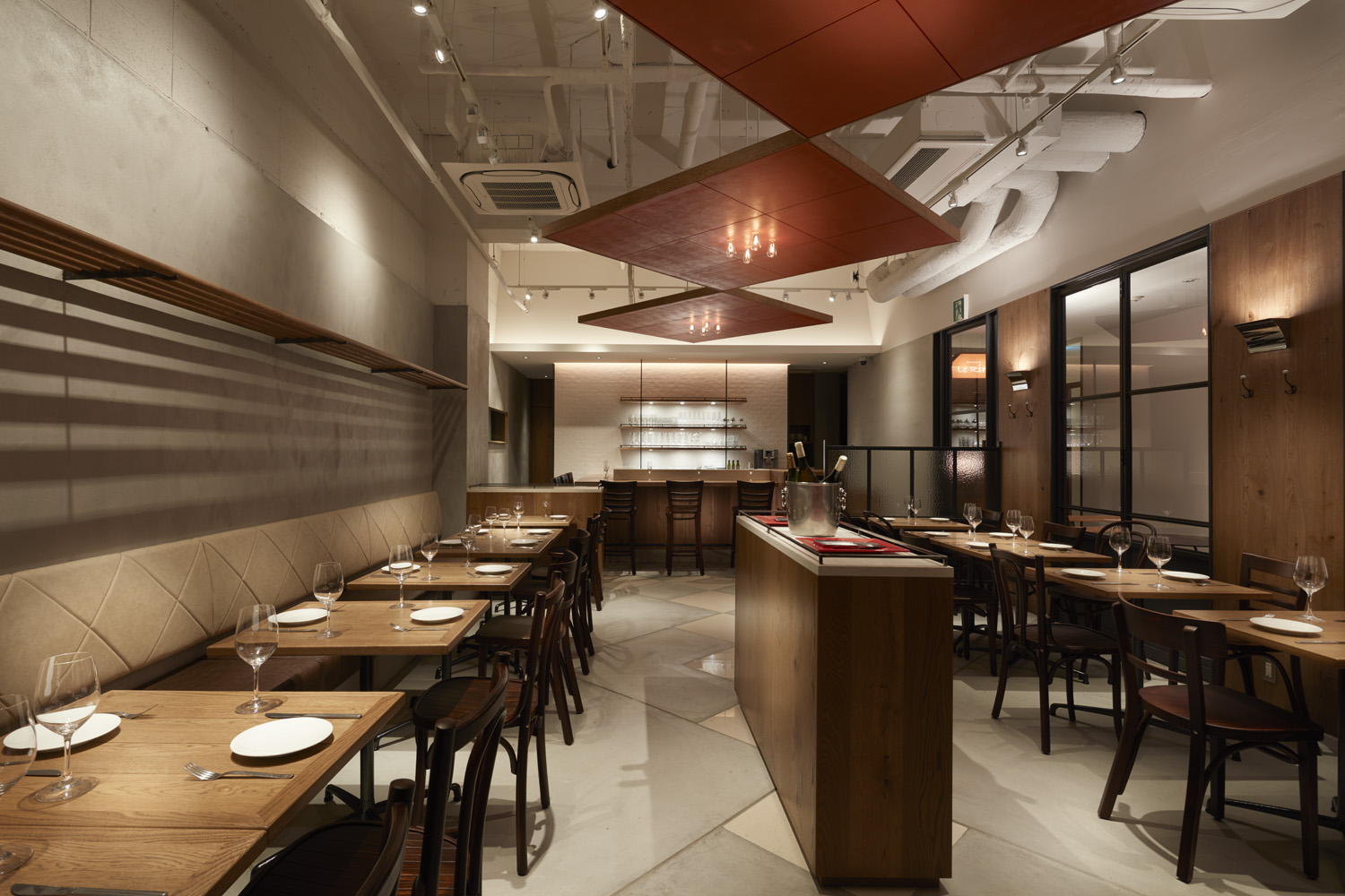千駄ヶ谷の気持ちの良い並木道に面したビルの地下一階に、ブラッスリーと姉妹店のレストラン2店舗のプロジェクト。