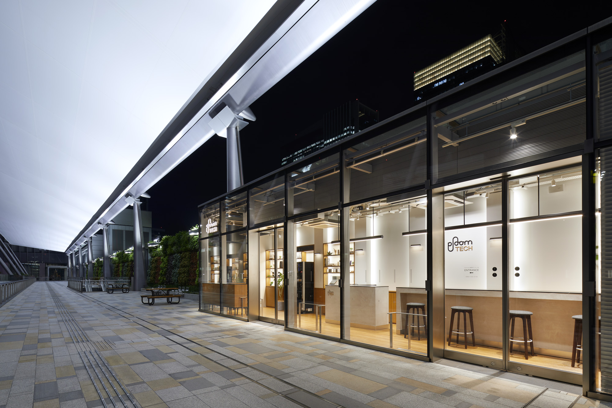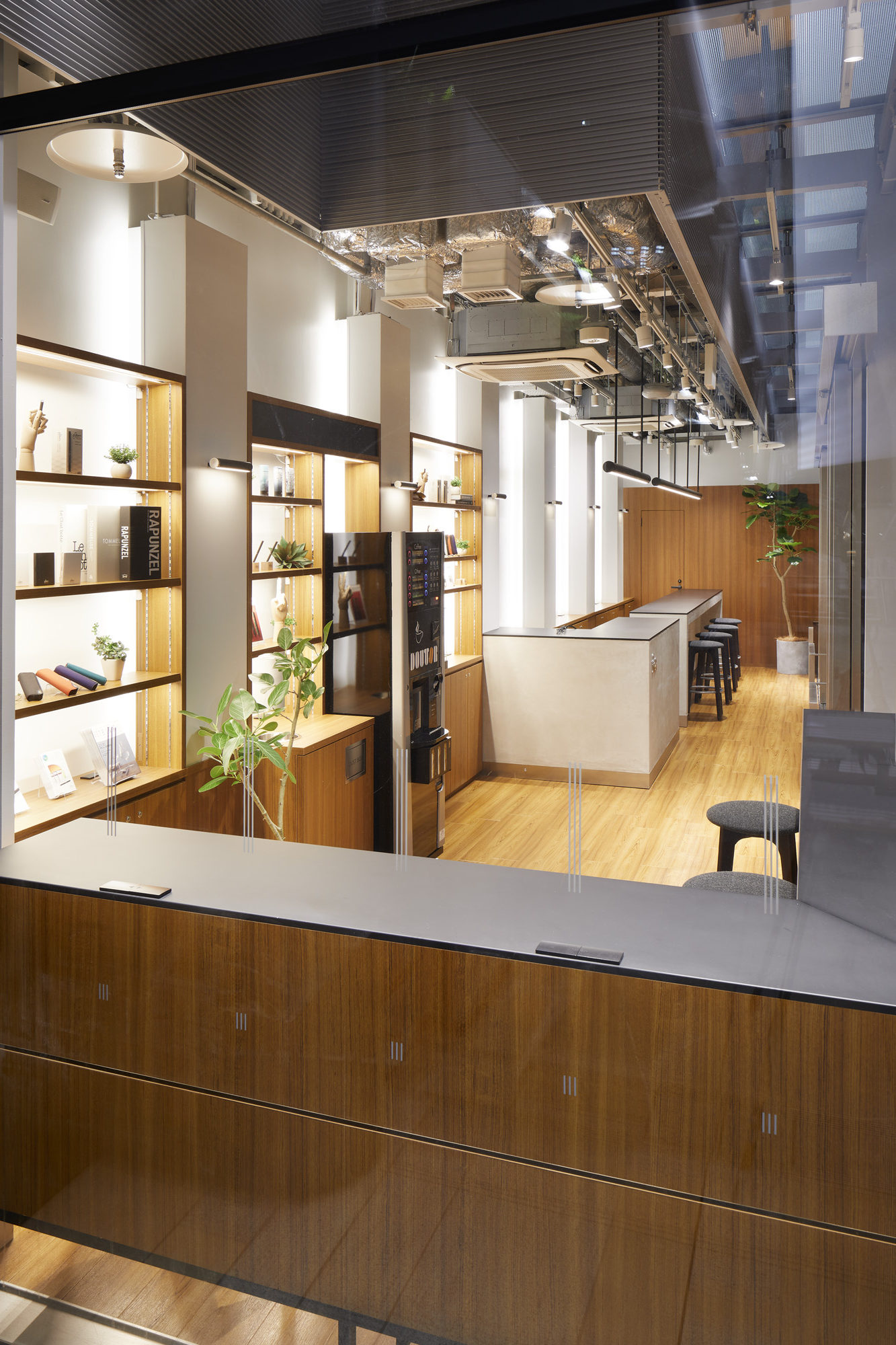 また、幅12mx奥行き3mという区画の中で従来の機能のほか、トラベルグッズの販売やドリンクサービス、ビジネスラウンジなどターミナルステーション と...してのしつらえも付加し、立地に応じたローカルカスタマイズを施している。